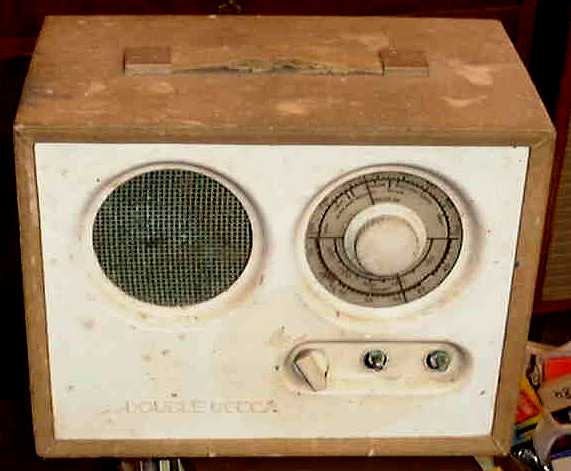 I have absolutely no information on Decca radios at this stage. I guess there was a tie up with the recording company, as the spelling is the same. I am assuming this radio may have been brought in from the United Kingdom. It is interesting in that it is called a Double Decca. A play on words, I guess. It is battery and power operated, hence the "Double" bit of the name. It has 4 valves plus a selenium rectifier, 2 gang tuner and 4 inch speaker. The loop aerial is around the wooden cross. There is a voltage selector for 110, 220 and 24o volts, so presumably was intended to be used anywhere in the world. At the moment, it does not work. Click on pictures below for large versions.