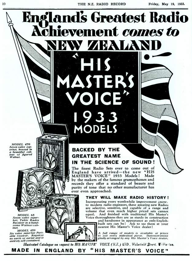 H.M.V. was yet another brand made by Collier & Beale, along with brands such as Ensign, National. Neeco, Pacemaker, Stella, Sterling, Strohmeyer and ARC-Victor. Yes, that is spelled correctly! A 5 valve, dual band, electro-mag speaker set from about 1947/48. No front knobs, no band change knob on the side, no dial plate, and a rough cabinet. I have no idea if it works, at the moment! The name plate is actually a decal in the middle of the top face.